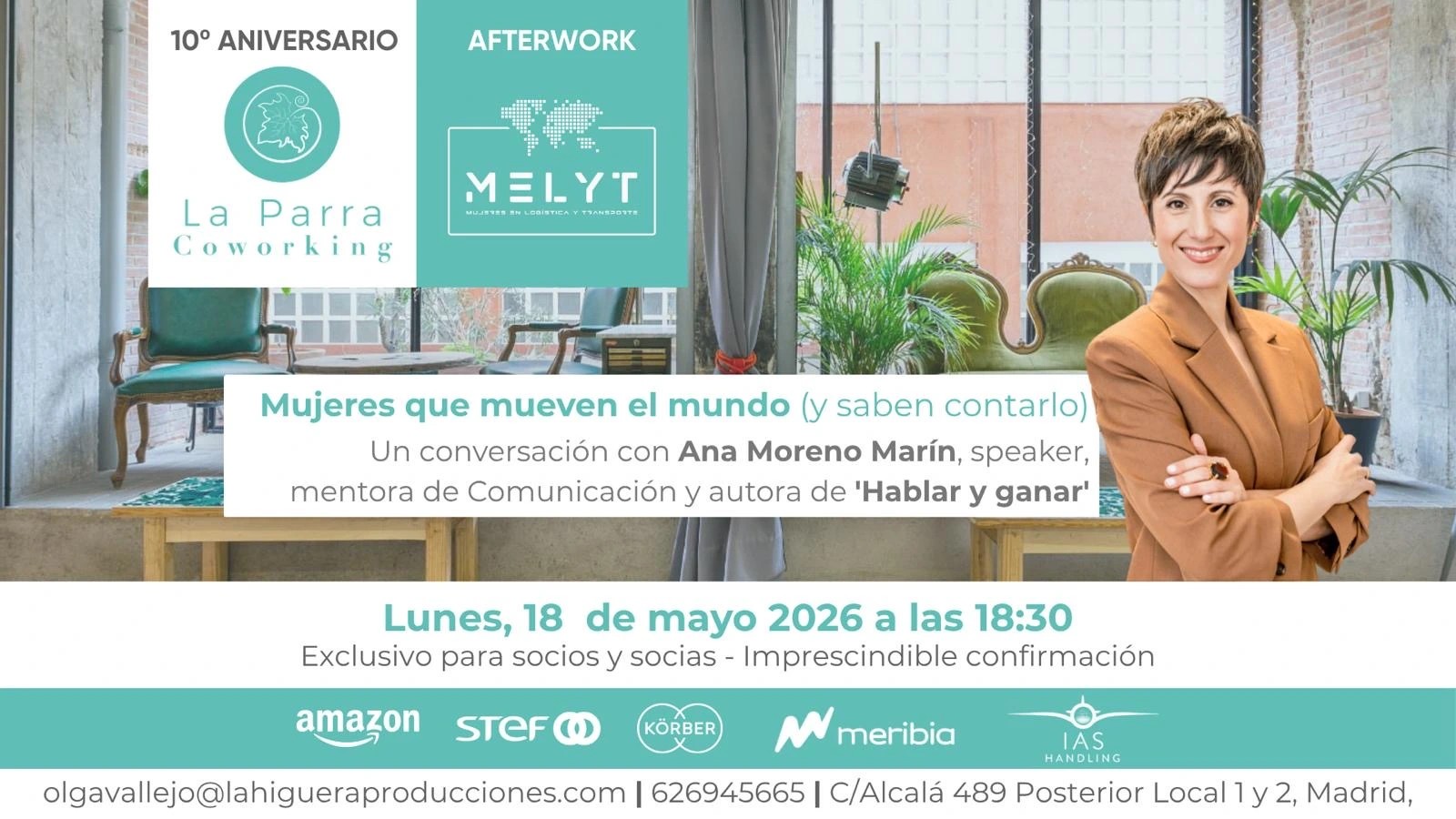 La Parra Coworking C. Alcalá, 489, San Blas-Canillejas,, Madrid, SpainLa comunicación con impacto es la herramienta que cambia las reglas del juego. Aprende a hablar, a posicionarte y a liderar con autoridad en un sector que te necesita. Una conversación con Ana Moreno Marín, speaker internacional, experta en comunicación y autora de ‘Hablar y Ganar’ (Penguin R. House). Especializada en impulsar a mujeres líderes […]